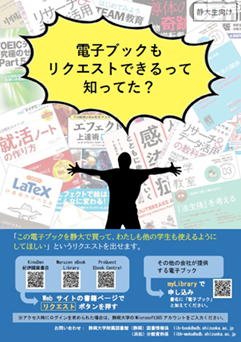 なお現在、静岡大学の学生の方は、電子ブックについて通常のリクエストよりも多く申し込むことができます。詳しくはこちらのリンク先をご覧ください。